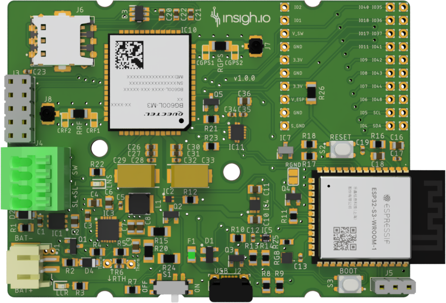 - UART1_TX/UART1_Rx: Exposed Serial Bus to accomodate compatible devices (modem, GPS, etc.)